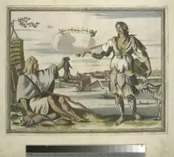 New York was cosmopolitan from the beginning, established and governed largely as a strategic trading post. One visitor during the early revolutionary period wrote that "the inhabitants are in general brisk and lively," the women were "handsome," he recorded—as did others new to the city—though, he added, "it rather hurts a European eye to see so many Negro slaves upon the streets."[1] There were numerous marriages of people from different ethnic groups. "Joyce Goodfriend's study of colonial New York City, for instance, suggests that many interracial marriages occurred more because of a lack of opportunity to marry within their own group than a desire to marry outside it. ...over 60% of Englishmen in the New York capital in the late 17th century married women of non-English origins." However, by the 1730s over three fourths of the Dutch men and women still married within their own groups, though by this point there was a generation of children of mixed European ancestry.[2] Freedom of worship was part of the city's foundation, and the trial for libel in 1735 of John Peter Zenger, editor of the New-York Weekly Journal established the principle of freedom of the press in the British colonies. Sephardic Jews expelled from Dutch Brazil after Portuguese recapture, were welcome in New York when the governor realized their value and gave them exemptions from restrictions on Jews.[3]
