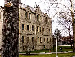 By the end of the 19th century, the university grew to contain several schools: a College of Liberal Arts (founded in 1844), a School of Music (1877), a School of Fine Arts (1877), a School of Oratory (1894), and a Business School (1895).[13] Recognizing the need for new departments and the value of specialized instruction, the Ohio Wesleyan administration improved the college's facilities and offerings to make its curriculum and buildings on par with its new academic position. Construction during that period included Monnett extensions, University Hall and Slocum Library. Athletics and physical education facilities were established and a start was made for a new gymnasium.[14]