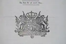 The coat of arms of the Kingdom of Sardinia (1821).