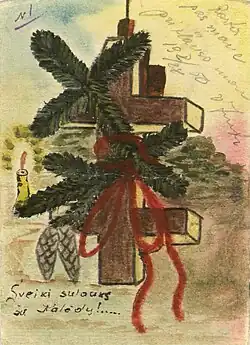 Christmas postcard of Lithuanian partisans. Confiscated by Soviet authorities from partisan supporter in 1950. Lithuanian Special Archives.