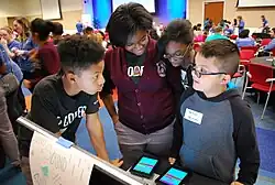 By 1900, 34 states had compulsory schooling laws; four were in the South. Thirty states with compulsory schooling laws required attendance until age 14 (or higher).[96] As a result, by 1910, 72 percent of American children attended school. Half the nation's children attended one-room schools. By 1930, every state required students to complete elementary school.[97]