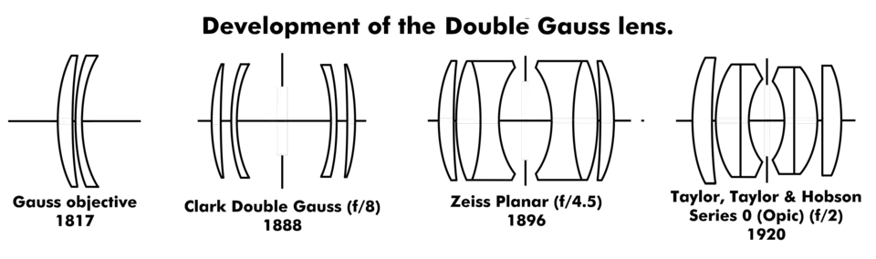 Later the design was developed with additional glasses to give high-performance lenses of wide aperture. The main development was due to Taylor Hobson in the 1920s, resulting in the f/2.0 Opic and later the Speed Panchro designs, which were licensed to various other manufacturers. The design forms the basis for many camera lenses in use today, especially the wide-aperture standard lenses used on 35 mm and other small-format cameras. It can offer good results up to f/1.4 with a wide field of view, and has sometimes been made at f/1.0.