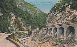 A train crossing the Cascades Bridge in Tlemcen, 1905.