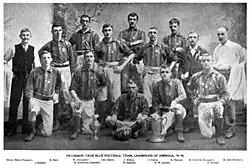 The Oneida Football Club was established in 1862 by Gerrit Smith "Gat" Miller, a graduate of the Latin School of Epes Sargent Dixwell (a private college-preparatory school in Boston).[3] Oneida is regarded to be the first organized team to play any kind of football in the United States.[4][5][6][7] The game played by the club, known as the "Boston game", was an informal local variant that combined association and rugby football[5]