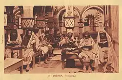 The Jewish population of Djerba is divided between two stud farms: villages that remained exclusively Jewish until the 20th century. Hara Sghira (small quarter), also called Dighet, not far from Ghriba, and Hara Kbira (large district), six kilometers to the north and now included in Houmt Souk, the largest city on the island.[23] While the Jewish population of the Maghreb was generally concentrated in specific neighborhoods of predominantly Muslim cities, Djerba could be, according to Jacques Taïeb, "the only Jewish area in the Maghreb to have two entirely Jewish towns, a bit like the shtetls of Eastern Europe."[24]