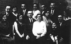 Bund (General Jewish Labour Bund) was one of the Jewish socialist parties. There is no official record of when the party's structures were established in Szydłowiec, but it likely emerged as early as 1918.[42] By 1929, the local Bund cell had 50 members. The party's leadership in Szydłowiec included Szapsia Laks, Abram Laks, Abram Blicher, and Szyja Opatowski. Bund had influence over the United Jewish Schools Association, the Jutrznia Sports Association, and the Leather Industry Workers' Union. It also had some sway over the Society for Evening Courses and the Shoe Industry Workers' Union.[43] The party established its own youth organization in the city – the Youth Union Future (Tsukunft). The Szydłowiec branch collaborated closely with the nearby branch in Końskie, both of which were part of the Bund district in Radom.[43]