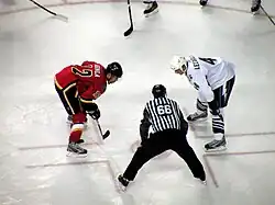 The loss of the 2004–05 season led the NHL to institute a special lottery to determine the order of the 2005 draft, as there were no standings to base a drafting order from.[59] The Pittsburgh Penguins won the lottery, and selected Sidney Crosby, a highly prized prospect whose arrival to the NHL had been greatly anticipated.[59][60] Crosby and the Washington Capitals' Alex Ovechkin, the 2004 first overall pick, were expected to become the faces of the NHL as the league entered a new era.[61][62] Ovechkin was named the Calder Memorial Trophy winner as rookie of the year in 2005–06, while Crosby's presence helped Pittsburgh's attendance increase by 33%, over 4,000 fans per game.[63]