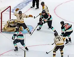 Prior to 2017, the NHL's last expansion was in 2000, adding the Columbus Blue Jackets and Minnesota Wild to bring the number of teams to thirty. After the Atlanta Thrashers relocated to Winnipeg in 2011, sixteen of the teams in the league were in the Eastern time zone; the conferences remained balanced with fifteen teams each until the league realigned in 2013. Following the realignment, all sixteen teams in the Eastern time zone were placed into the Eastern Conference and the remaining fourteen teams were placed in the Western Conference, leaving the conferences unbalanced. Beginning in 2013, the NHL started hearing from groups interested in acquiring an NHL franchise. Interest was shown from groups in Seattle, Kansas City, Las Vegas and Quebec City.[4] Groups in the west were favoured by the NHL so as to even out the team distribution. Seattle did not have an arena, while Las Vegas and Quebec City were building new rinks.[4] In June 2015, the NHL announced that it was officially considering expansion and set an application deadline for July 20, 2015 for teams to begin play in 2017. Prospective teams had to pay US$10 million to apply, of which $2 million was refundable.[5] Las Vegas and Quebec City progressed to stage two of the process in August 2015.[6] Ultimately, only Las Vegas was approved by the league's Board of Governors on June 22, 2016,[7] to pay an expansion fee of US$500 million.[8] Las Vegas was not considered to be a hotbed for ice hockey.[7] To ensure the new team's success on the ice and attendance, the NHL made more players available in the expansion draft from the existing teams. This led to a large number of trade deals by Las Vegas, as existing teams sought to protect players strategically. The shorter lists of protected players meant high-profile players such as Marc-Andre Fleury, James Neal, Eric Staal and Sami Vatanen were available for selection in the expansion draft.[9]
