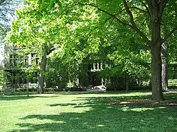 The University of Chicago's Hyde Park campus was established in 1890 through the efforts of the American Baptist Education Society and oil magnate John D. Rockefeller, who later called it "the best investment I ever made."[2] The University of Chicago held its first classes there on October 1, 1892.[3] The original tract of land, comprising the current main quads, was donated by Marshall Field, owner of the Marshall Field and Company department store. Other Chicagoans made financial donations to match Rockefeller's offer. Martin A. Ryerson (1856–1932) served as the president of the board of trustees of the University from 1892 to 1922. He donated over $2 million to the university, including $350,000 for the construction of the Ryerson Physical Laboratory, and endowed the Martin A. Ryerson Distinguished Service Professorship in 1925.[4]