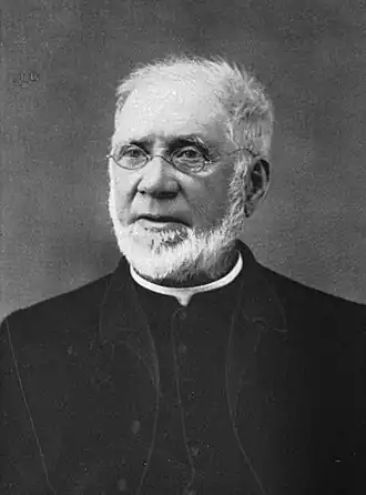 Lawrence residents had originally proposed opening a private Free-State college in the town when it was first settled, in the summer of 1854.[1] That fall, one of the agents of the New England Emigrant Aid Company, Charles Robinson, told treasurer Amos Adams Lawrence that the citizens of Lawrence would begin a college as soon as possible, to be located atop Hogback Ridge (later known as Mount Oread).[1][3] By 1856, no private college for Lawrence was yet established, but town residents were still hoping to do so – and now also began to hope that it could later be converted into the state's university.[1] On Christmas Day of 1856, a group of prominent Lawrence citizens adopted a resolution from a business committee stating that the time had come to establish a college in Lawrence.[1] Fifteen trustees were appointed to govern the institution and immediately appointed a committee to petition congress for land.[1] It was estimated that $100,000 would be necessary to get the college started properly, and that nearly all of this money would have to be raised outside of the Kansas Territory.[1] The territorial legislature chartered a private "University of Lawrence" in January 1859, but in the end, the settlers were never able to create a private college in Lawrence.[4]