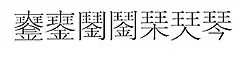 Ancient and modern variants of the character for the word qin, often found in old books