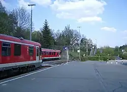 Selbitz is a crossing station for trains on the line which, since 9 December 2007, have operated an hourly service (actually alternating every 53 or 67 minutes). It is about halfway between Hof and Bad Steben and is equipped with semaphore signals and a signal box. The branch line from the upper Selbitz valley, from Schauenstein, Helmbrechts and Münchberg, used to form a junction here; an old stone bridge and the large station yard serve as lingering reminders. On leaving the town in the direction of Naila, the route crosses the old B 173 at a level crossing, but the construction of the new B 173 ring road at the end of the 20th century reduced the importance of this crossing.