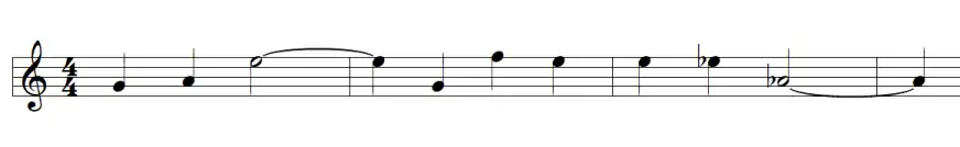 The piece starts with an introduction with lush instrumentation in C Major, moving to F minor and back to C Major with the following theme: