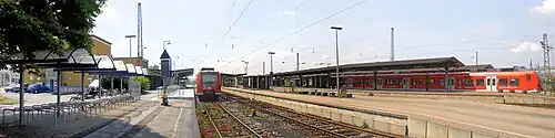 Homburg (Saar) Hauptbahnhof is a railway station in the town of Homburg in the German state of Saarland. It is a through station with four platforms and seven platform tracks and is classified by Deutsche Bahn as a station of category 3. It is located at the junction of the Homburg–Neunkirchen line and the Mannheim–Saarbrücken line (Palatine Ludwig Railway). It has been the western terminus of line S1 of the Rhine-Neckar S-Bahn since 2006.