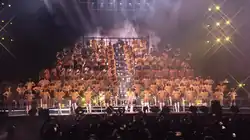 Performances were held at the Coachella festival on April 14 and 21, 2018. Onstage appearances includes an ensemble of dancers, her sister Solange, her husband Jay-Z, and her former girl group Destiny's Child joined Beyoncé on stage. On April 21, 2018, she was joined by J Balvin for "Mi Gente" in which his verse was sung first, though this was not included in the film. She played a 26-song set to 125,000 concert-goers in attendance.[28] The set sampled Malcolm X and Nina Simone among others.[29] Beyoncé wore five different costumes through the two-hour performance, designed with Olivier Rousteing of French fashion house Balmain.[30]