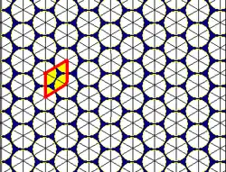 It is also related to the densest circle packing of the plane, in which every circle is tangent to six other circles, which fill just over 90% of the area of the plane.