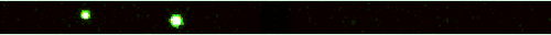 In the figure above, the pairs of photons are registered in the middle of the Hong–Ou–Mandel dip.[3] In most cases, they appear grouped in pairs either on the left or right side, corresponding to two output ports of a beam splitter. Occasionally a coincidence event occurs, manifesting a residual distinguishability between the photons.