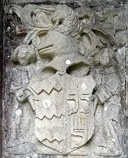 - ^ Above is the crest of Basset A unicorn's head argent. The supporters are human figures representing dexter: Sir John Basset, and sinister: Honor Grenville. Detail from the Umberleigh House Porch, formerly part of the manor house of Umberleigh, North Devon, moved to the wall of the subtropical Gardens, Watermouth Castle, North Devon.[5]