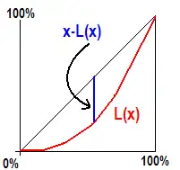 This value can also be computed using quantiles. For the formula, a notation[2] is used, where the amount of quantiles only appears as upper border of summations. Thus, inequities can be computed for quantiles with different widths . For example, could be the income in the quantile #i and could be the amount (absolute or relative) of earners in the quantile #i. then would be the sum of incomes of all quantiles and would be the sum of the income earners in all quantiles.