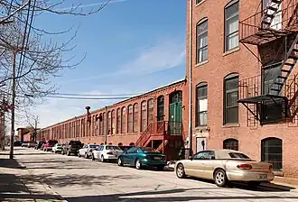 The Hope Webbing Company Mill is a historic textile mill at 999-1005 Main Street in Pawtucket, Rhode Island. The three brick buildings on this 7-acre (2.8 ha) are the surviving elements of what was once a larger complex, extending across Esten Avenue. The oldest portion of the main mill and the boiler house were built in 1889, with the mill growing by numerous additions through 1914. The preparing building was built in 1902 and enlarged in 1913. The Hope Webbing Company was established in 1883, and used these premises to manufacture narrow fabrics (less than 6 inches (15 cm) in width) using many different types of fibers, including cotton, jute, wool, and silk. The company occupied all or part of the premises until 1994, when it moved its remaining production to Cumberland.[2]