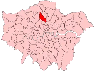 The constituency is a mostly suburban area in North London. Its residents are more educated and have a higher income than the average in both London and the United Kingdom.[6] 72% of the residents belong to the ABC1 social grade, in contrast with 59% in London and 56% in Great Britain.[6] The proportion of White residents (70%) is higher than the London average (54%) whereas the proportion of Christians (37%) is lower.[6] Around 19% voted to leave in the 2016 United Kingdom European Union membership referendum which is much lower than the London average (40%).[6] The constituency is more pro-globalism and more socially liberal than the average constituency in London, and much more than the average constituency in the United Kingdom.[6]