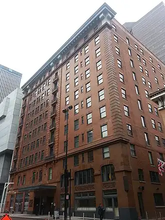 Designed by Joseph G. Steinkamp & Brother, the Neoclassical-styled[2] Hotel Metropole opened in 1912 in downtown Cincinnati as a 10-story hotel. In 1924 an 11th floor penthouse apartment was added. In 1971 the building was converted to low-income housing with retail and restaurants on the first floor.[3]