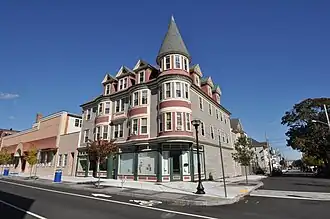 The Hotel Waverly is a historic hotel at 1162-1166 Acushnet Avenue in New Bedford, Massachusetts. The 3+1⁄2-story hotel was designed by locally prominent architect Samuel C. Hunt and built in 1901. The Queen Anne structure was originally designed to house four residential units on the upper floors, and retail space on the ground floor. In 1911 it was repurposed into the Hotel Waverly, with the second floor converted to a cabaret space. It was renamed the Hotel Touraine in 1922, operating as such until the mid-1970s.[2]