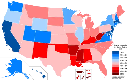 - ^ "US Census Bureau, median household income by state". Archived from the original on June 28, 2006. Retrieved June 29, 2006.