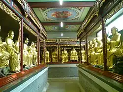 The name was changed to the Hualin Temple by the Zen master Zongfu () during his rehabilitation of its grounds in 1655.[n 1] There used to be a Gilded Ashoka Pagoda (阿育王) and 500 arhats statues (羅漢) but all of them were destroyed during cultural revolution.
