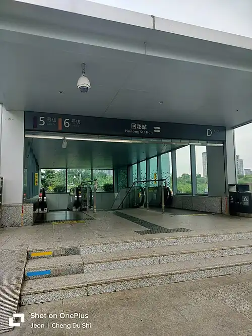 Huilong (Chinese: 回龙) is a station on Line 5 and Line 6 of the Chengdu Metro in China. It was opened on 27 December 2019 and it is the southern terminus of Line 5.[1][2]