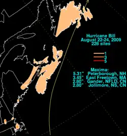 - ^ Staff Writer (August 23, 2009). "Bill marches into Atlantic Canada". Globe & Mail. Archived from the original on August 26, 2009. Retrieved August 23, 2009.