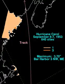 - ^ a b c d Canadian Hurricane Centre (2010-09-14). "1953-Carol". Retrieved 2011-01-17.