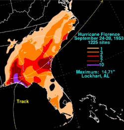 - ^ a b c David M. Roth (2008-09-23). "Hurricane Florence - September 24-28, 1953". Hydrometeorological Prediction Center. Retrieved 2011-01-26.