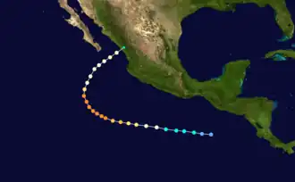 1. ^ a b c d e E.B. Gunther and R.L. Cross (1987). "Eastern North Pacific Tropical Cyclones of 1986". Monthly Weather Review. 115 (10). American Meteorological Society: 2507–2523. Bibcode:1987MWRv..115.2507G. doi:10.1175/1520-0493(1987)115<2507:ENPTCO>2.0.CO;2. ISSN 1520-0493.