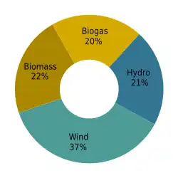 As of 2018, hydroelectric power stations in the United Kingdom accounted for 1.87 GW of installed electrical generating capacity, being 2.2% of the UK's total generating capacity and 4.2% of UK's renewable energy generating capacity. This includes four conventional hydroelectric power stations and run-of-river schemes for which annual electricity production is approximately 5,000 GWh, being about 1.3% of the UK's total electricity production.[2] There are also four pumped-storage hydroelectric power stations providing a further 2.8 GW of installed electrical generating capacity, and contributing up to 4,075 GWh of peak demand electricity annually.[3][4]