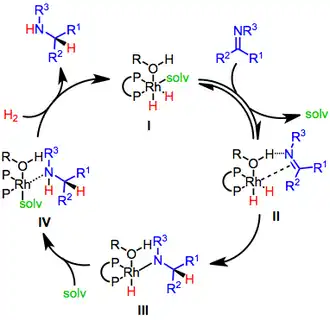 - ^ Becalski, Adam G.; Cullen, William R.; Fryzuk, Michael D.; James, Brian R.; Kang, Guo J.; Rettig, Steven J. (1991). "Catalytic asymmetric hydrogenation of imines. Use of rhodium(I)/Phosphine complexes and characterization of rhodium(I)/Imine complexes". Inorganic Chemistry. 30 (26): 5002–5008. doi:10.1021/ic00026a027.