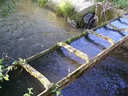 Various artificial canals are also present in the hilly area of the province, although with much smaller flows and dimensions than those in the plain. Among these, the Roggia del Piano and the Roggia del Piazzo, two mixed-use derivations of the Oropa Stream that served the city of Biella, have had considerable historical-urban importance in the past. The Roggia del Piazzo in particular is one of the oldest public works in the Biella area; in fact, it was born together with the district of the same name around 1160 and the cost of its construction was shared between Bishop Uguccione and the city of Biella.[29]
