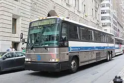 ![]() A 2022 Prevost X3-45 (1625) on the Eltingville-bound SIM1C in Midtown | |||
