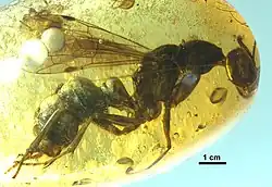 - ^ a b Colombo, W. D.; Gobbi, F. T.; Perkovsky, E. E.; Azevedo, C. O. (2020). "Synopsis of the fossil Pristocerinae (Hymenoptera, Bethylidae), with description of two new genera and six species from Burmese, Taimyr, Baltic and Rovno ambers". Historical Biology: An International Journal of Paleobiology. 33 (9): 1736–1752. doi:10.1080/08912963.2020.1733551. S2CID 216371693.