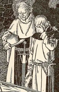 ![]() Hynek (left) depicted in Suchý čert a divoký sokol, 1926 | |
