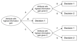 - there are no examples in the subset, which happens when no example in the parent set was found to match a specific value of the selected attribute. An example could be the absence of a person among the population with age over 100 years. Then a leaf node is created and labelled with the most common class of the examples in the parent node's set.