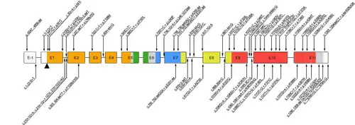 IPEX syndrome is inherited in males in an X-linked recessive pattern through the FOXP3 gene. FOXP3's cytogenetic location is Xp11.23.[6][7] The FOXP3 gene has 12 exons and its full reading open frame encodes 431 amino acids. FOXP3 is a member of the FKH family of transcription factors and contains a proline‐rich (PRR) amino‐terminal domain, central zinc finger (ZF) and leucine zipper (LZ) domains important for protein–protein interactions. It also has a carboxyl‐terminal FKH domain required for nuclear localization and DNA‐binding activity. In humans, exons 2 and 7 may be spliced and excluded from the protein.[17]