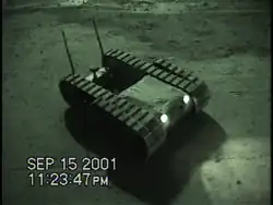 • Urbie (1997) was a proof of concept robot designed for urban environments. The platform was designed with two tank-like tracks so it could climb stairs. Urbie was field tested at Fort Benning, Georgia, United States; one model was gifted to a local high school on indefinite loan in 2005. High school students at Columbus High School in Columbus, Georgia, reconditioned the robot and created a usage manual for future students to continue to benefit from Urbie's list of talents. Urbie is built around a light, machined aluminum chassis. The exterior consists of flat aluminum plates, bent at the front and back, which are attached to the chassis with small hex screws. 2 dc motors power the forward rotating arms, while 2 slightly larger dc motors power the body length treads. From the outside, Urbie is an exact replica of the PackBot Scout. The front compartment holds 2 banks of LEDs, one white light, the other infrared. The center-front compartment holds a video camera and an infrared camera. Both cameras' images are transmitted back to a handheld LCD screen and remote control console via a single antenna. The image that is transmitted back is controlled by a mechanical switch, thrown remotely inside the chassis by a remote controlled actuator. The motors are controlled the same way that a remote control airplane or car is. The ability to reverse the tread direction on both sides gives the robot a 0m turn radius. In 2006, the exterior body was refinished, the antennas were repaired (replaced by a fishing pole) and some of the interior electronics were updated. The robot is simply constructed, with basic electronic controls, and is the same physical design as the current PackBots, it only lacks the digital processor.