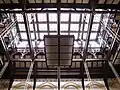 Joseph Goddard designed the Victorian Gothic structure in 1872 for the Leicestershire Banking Company. The company was a financer of major industries in Leicester and solicited proposals from local architects for a new expansion. Joseph Goddard belonged to a prominent family of architects and played a major role in introducing Victorian gothic architecture to Leicester with his clock tower design. Completed in 1874 at the cost of £7,439, the bank contrasted the classical designs of the other buildings with its corner porch, French pavilion roofs, and two-story-tall stained-glass façade.[9] Similarly spectacular, the bank's interior featured enormous hammer beams that formed a lantern roof giving the building a lofty and imposing atmosphere. The hand-carved pillars incorporated friezes and coat of arms representing cities where the company did business.[9] The project's success earned Goddard multiple commissions for new banks throughout the East Midland region. The newer banks highlight his shift towards a more restrained domestic revival and Queen Ann style. Many of his buildings are still in use and listed as historic structures by English Heritage.