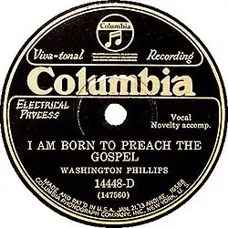- 1928 – Washington Phillips,[5][6][7][8] 78prm single Columbia 14448-D [9]