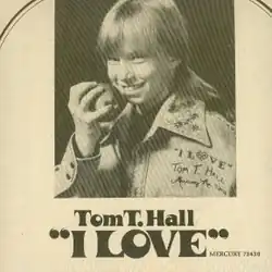 "I Love" is a song written and recorded by American country music artist Tom T. Hall. It was released in October 1973 as the only single from the album For the People in the Last Hard Town. The song would be Hall's most successful single and was his fourth number one on the US country singles chart, spending two weeks at the top and a total of 15 weeks on the chart.[1] Additionally, "I Love" was Hall's sole entry on the Top 40, peaking at number 12.[2]