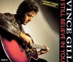 "I Still Believe in You" is a song co-written and recorded by American country music singer Vince Gill. It was released in June 1992 as the first single from his album of the same name. The song reached the top of the Billboard Hot Country Singles & Tracks (now Hot Country Songs) chart, making it Gill's first number one. It was written by Gill and John Barlow Jarvis. The song was covered by Jazz artist Warren Hill featuring singer Mitch Malloy in 1993 and English rock band Bad Company on their 1996 CD Stories Told & Untold with Robert Hart on lead vocals.