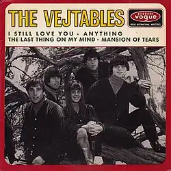 "I Still Love You" is a song by the American folk rock band the Vejtables, written by Jan Errico, and first appears on the group's debut single, which was released on Autumn Records in 1965 (see 1965 in music). The Vejtables were signed to the record label after receiving some regional notice on the nightclub circuit, despite all the band members still being enrolled in high school.[1] "I Still Love You" exhibits influences from their label-mates the Beau Brummels, though it is largely marked by its jangling 12-string guitar arrangements, folky vocal harmonies, and sparse use of the harmonica.[2] Arguably the Vejtables' greatest asset was Errico, who not only penned the song, but also played drums, making her one of the few 1960s female musicians to do so.[3] Upon release, "I Still Love You" reached number 83 on the Billboard Hot 100, becoming the only Vejtables release to crack the chart.[4] The song charted quite respectably in Chicago. It debuted on the 10th of September, and 3 weeks in the charts, finally peaking at number 23 on the 24th of that month.[5]
