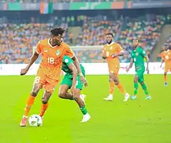 On 28 December 2023, he was included in the Ivory Coast's squad for the 2023 Africa Cup of Nations held in his home country.[22][23] On 11 February 2024, he came on as a late substitute in the final of the tournament against Nigeria, which ended in a 2–1 victory for Ivory Coast.[24]