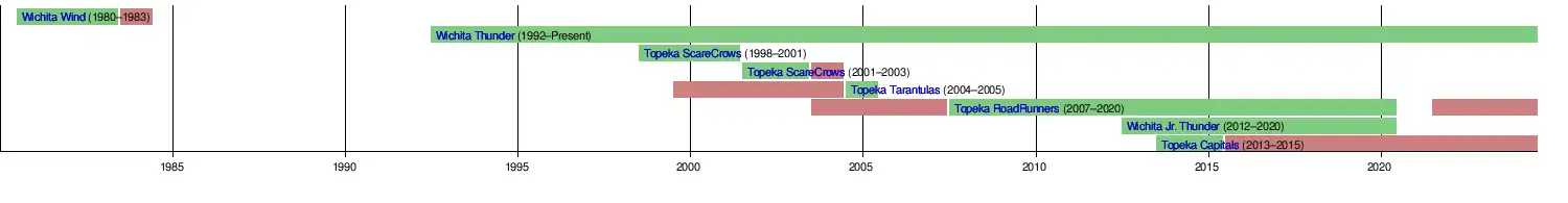 Since the early 90's, the Wichita Thunder remain the only team that has been able to survive in Kansas, doing so in spite of the collapse of their original league and a subsequent move to the ECHL.[8][9]